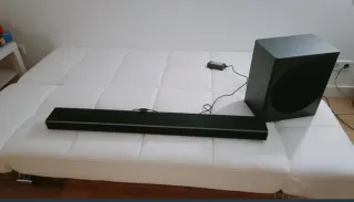 Barra de Sonido Bluetooth Aux en perfecto estado con libro mando a distancia y cables mui poco Uso gente interesada un saludo