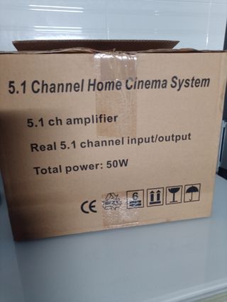 Sistema de cine en casa HH de 5.1 canales. Incluye subwoofer y satélites. - Potencia RMS: 25W + 8W*5. - Unidad de altavoz: 4'' + 2.5''*5. - Impedancia: 4 ohm. - Respuesta de frecuencia: Subwoofer 20Hz-200Hz, Satélite 150Hz-20KHz. - Control: Master, Bass, Center, Rear, Front, 2.1/5.1ST, Power ON/OFF. - Tamaño del embalaje: 405*265*315mm. - Peso neto: 5.4kg. - Peso bruto: 6.4kg. - Suministro de energía: AC110V/60Hz, AC220V/50Hz, AC230V/50Hz.
