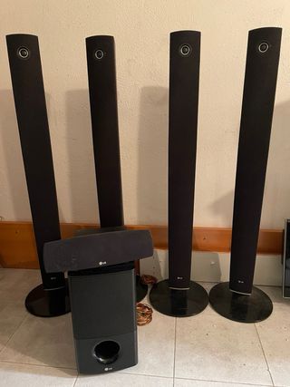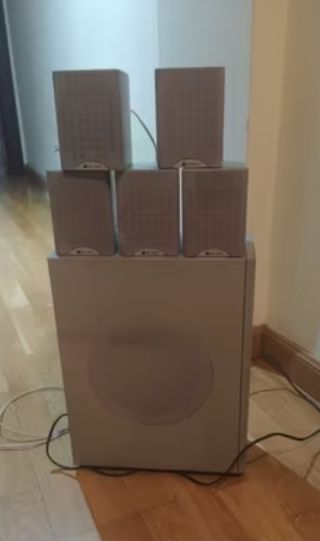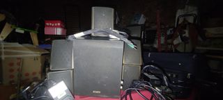 Equipo de sonido para TV en buen estado. Incluye un subwoofer y 5 altavoces. Perfecto para disfrutar de tus películas y series favoritas. - Subwoofer potente. - 5 altavoces de sonido envolvente. - Diseño elegante y moderno.