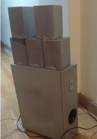 Se vende Home Cinema 5.1 Daewoo mod DHE-X150E. Esta completo, inclye mando a distancia , antena FM y AM, todos los altavoces. Faltarian los cables de 3 altavoces, que no los encuentro, pero son cables de audio normales. Tiene Radio, entrada auxiliar y funciona sin problemas. Hago envíos , pero contactame antes de comprar..