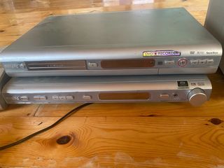 Home Cinema combo DVD - VHS marca TARGA. Sistema de sonido 6.1. Lo tenía guardado, lo saqué para probarlo pero no se enciende (cuando lo guardé funcionaba perfectamente, como nuevo). Consulté en una tienda de reparación de electrodomésticos y me dicen que creen que tiene fácil solución, pero debido a que no lo uso no me merece la pena arreglarlo. Sólo vendo el reproductor con el mando a distancia. Los altavoces los uso para otro equipo, pero se pueden conseguir los originales sin problema en Wallapop por 30€. Posibilidad de entrega en mano en Burgos y Bilbao.
