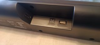Barra de sonido con un diseño elegante y moderno. Marca Bomaker. No me deja seleccionar esa marca en categorías, por eso puse LG. - Acabado en malla. - Puerto de salida visible. - Bluetooth. - Salidas físicas: Arc, Aux, USB, Optical y DC in.