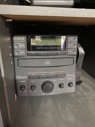 Se vende equipo de sonido estéreo de la marca aiwa modelo LCX-01 reverse, con un slot para compact disc y otro para cinta. También el mueble marca Pioneer que lo contiene por 30€. La venta puede ser por separado. En buenas condiciones. El equipo se puede enviar, el mueble no por sus dimensiones.