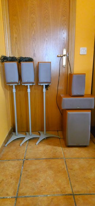 Home cinema 5.1 Incluye ademas del reproductor y el altavoz grande pequeños altavoces ambientales