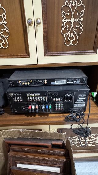 Home cinema en perfecto estado .Apenas sin uso que estaba guardado en trastero hace tiempo.Funciona perfecto. Incluye altavaces Jamo con altavoz central, dos delanteros altos con subwoofer incluido en los mismos y dos altavoces traseros mas mando