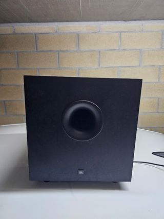 Subwoofer JBL TLX SUB 125 en perfecto estado. Es un subwoofer de color negro, con un diseño elegante y compacto. - Ofrece un sonido potente y nítido. - Ideal para complementar tu sistema de cine en casa.