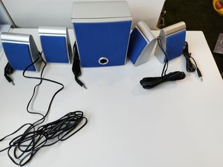 Conjunto de altavoces samsung, sub woofer y 5 altavoces pequeños. Solo se han usado 2 pequeños para comprobar su funcionamiento. Con todos sus cables y conectores de conexión.