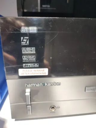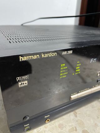 Receptor AV Harman Kardon AVR 2000 en color negro. Este dispositivo ofrece una experiencia de audio envolvente. - Soporta Dolby Digital y DTS. - Múltiples entradas digitales y analógicas. - Sintonizador de radio FM/AM integrado. Usado para sonido estereo y radio normalmente. He intentado probarlo con sonido por fibra optica pero no he conseguido que suene o no se si sera configuracion. El sonido estereo o incluso con central tb, es bueno. Quizas me resulte un poco corto de potencia, tb estoy acostumbrado a equipos mas potentes. Incluye mando de otro modelo, aunque cumple los ajustes basicos. Precio ya reducido por lo comentado.