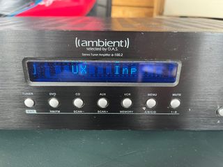 Amplificador integrado con 7 entradas estéreo Salida pre-out y entrada amp-in Potencia 60w RMS por canal sobre 8ohms Sintonizador fm En buen estado con alguna marca del uso