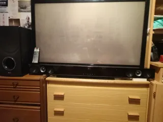 Sistema de sonido para cine en casa. - Altavoces frontales - Altavoces traseros - Altavoz central - Subwoofer - Amplificador/Reproductor Ubicación Benidorm, no se hacen envíos.