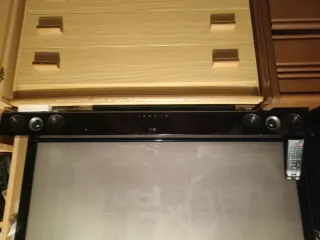 Barra de sonido Bannaker en color negro, en buen estado. Incluye: - Conexiones ópticas, coaxial y USB. - Entrada auxiliar. - Cable de alimentación.