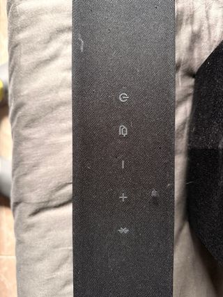 Barra de sonido vertical de diseño elegante. - Altavoces integrados. - Base estable para colocar en el suelo. - Con mando a distancia. Tiene un pequeño defecto en la tapa, no afecta al funcionamiento (ver último foto).