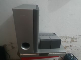 Se vende home cinema . Dispone de un DVD panasonic con usb para ver pelis ect . Al mismo tiempo es amplificador de home cinema 5.1 con un subgrave y 5 altavoces SONY preciosos dos de ellos con soporte de pared para los traseros. Siema espectacular con un monton de sistemas de sonido diferentes .