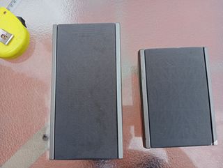 Pareja de altavoces para cine en casa. Son de color gris y negro, y funcionan perfectamente - Uno central y otro un satélite - En el central se ven las características de los mismos en la pegatina. Se venden ambos juntos. El precyes por los 2