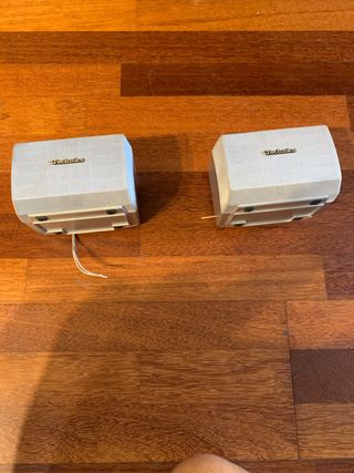 Par de altavoces compactos. 50w de potencia y 6 ohmios de impedancia. Pertenecían a un equipo de Home cinema. En buen estado y funcionando perfectamente. Son pequeños, ver medidas en las últimas fotos. - Diseño moderno y elegante. - Logotipo de la marca LG visible.