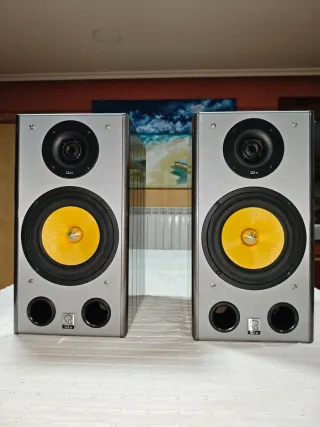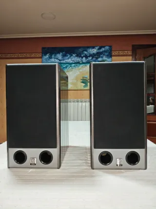 Pareja de altavoces Qln, Suecia. - Diseño elegante en color gris espacial. - Tweeter de seda. - Woofer de Kevlar. - Dos puertos bass reflex frontales. - 25 - 20.000 Hz - 10 Kg cada una. Una caja tiene un pequeño rasguño en el lateral y golpe en la esquina trasera inferior, que no se ve una vez colocada y por supuesto no afecta a la electrónica ni al sonido. Tengo también un altavoz central de la misma gama, 602 MKII. También un receptor Home Cinema Denon AVR-2106. Ver mis anuncios.