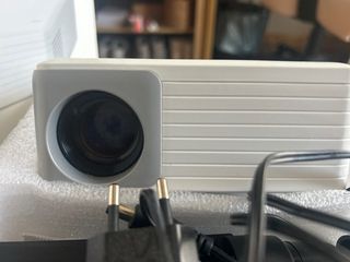 Mini proyector de la marca Akiyo, ideal para crear tu propia sala de cine en casa. Su diseño compacto lo hace fácil de transportar. - Color blanco y gris. - Lente con advertencia de no mirar directamente. Viene con cargador mando distancia y trípode. Funciona con HDMI, pero no viene incluido