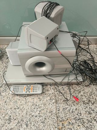 Sistema de sonido envolvente para una experiencia de cine en casa. - Incluye unidad principal y 5 altavoces y subwoofer. - Diseño elegante en color negro. Salidas RGB y SCART y Jack Funciona perfectamente y tiene gran potencia. Incluye sintonizador de Radio y lector de DVD