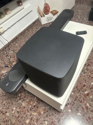 Subwoofer y barra de sonido 5.1.2 de LG SPJ9B-W en perfecto estado. Se venden juntos. - Sistema de sonido envolvente de alta calidad, Muy Potente. - Entradas por Bluethooth, wifi, optical, HDMI, Aux - Diseño elegante y compacto. - Subwoofer inalámbrico. -Barra 1200 mm x 145 x 58 - Subwofer 296 mm x 332 x 296 Costó casi 1099€ en Media Market