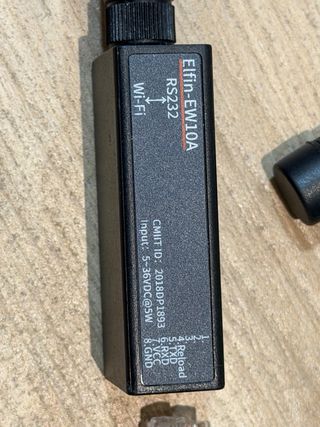 Adaptador Elfin 10A con conexión WiFi y RS232. - Incluye antena. - Conector verde para alimentación. - Cable conector negro. Ideal para pasarela entre tu inversor fotovoltaico y la domotica o el vehículo eléctrico.