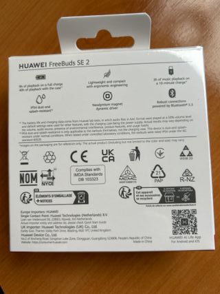03-U604478 A estrenar. Los Huawei FreeBuds SE 2 son ideales para quienes buscan unos auriculares inalámbricos económicos, con buena calidad de sonido, autonomía y resistencia para un uso diario o para hacer ejercicio. 3 años de garantía. Disponible sólo para envío mediante wallapop o compra directa en nuestra web realcash. es. Enviamos a toda España excepto Canarias, Ceuta y Melilla.