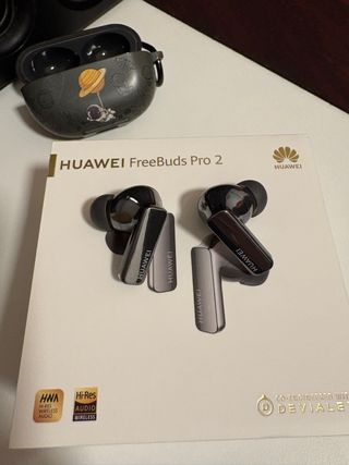 Auriculares inalámbricos Huawei Freebuds Pro 2. - Diseño elegante en negro y plateado. - Incluye estuche de carga con diseño espacial. - Certificación Hi-Res Audio Wireless.