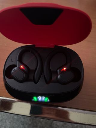 Auriculares inalámbricos con un diseño moderno y llamativo. - Indicador LED de carga para ambos auriculares. - Acabado exterior en rojo y negro. Venta en persona