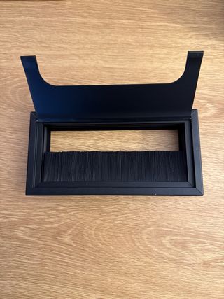 Accesorio para organizar cables en escritorios o mesas. Su diseño con cepillo ayuda a mantener los cables ordenados y protegidos. - Color: Negro. - Material: Metal. -8x16cm -Alto 3cm