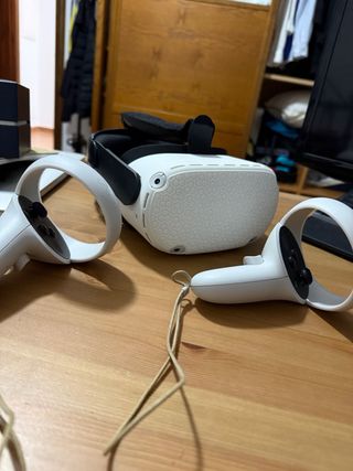 Sistema de realidad virtual Oculus Quest 2. - Incluye casco de RV. - Dos mandos de control.