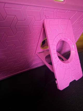 Funda protectora para iPad de 10ª generación en color rosa. Presenta un diseño divertido con personajes. - Material de silicona. - Asas laterales para fácil transporte. - Textura interna cuadriculada.