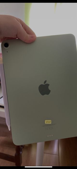 Tablet iPad Air de 4ª generación con pantalla de 10.9 pulgadas y 64GB de almacenamiento. Lo vendo porque he comprado uno de mas pulgadas. -regalo carcasa del shein en perfecto estado. -no caja, no cargador -Color verde -En perfecto funcionamiento - Modelo de 2020.
