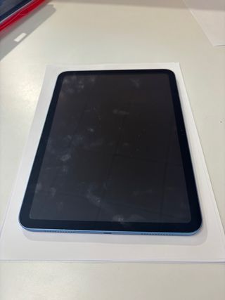 iPad de décima generación en color azul y una pantalla de 10.9 pulgadas. Capacidad de almacenamiento de 64GB. Va con funda de regalo. Lo vendo porque me lo compré por capricho y no le he dado nada de uso. Está realmente como nuevo, cable original sin sacar de la caja. Ni un solo rasguño.
