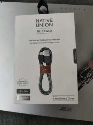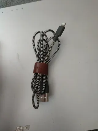 Cable de carga y sincronización trenzado con cinturón de cuero. - Longitud de 1.2 metros (4 pies). - Diseño trenzado duradero. - Incluye cinturón de cuero para organización. - Compatible con iPod, iPhone y iPad.