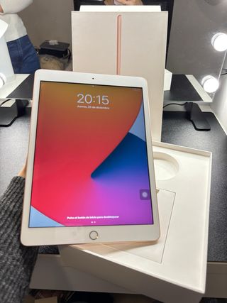 Tablet Apple iPad de 8ª generación con 32GB de almacenamiento. Modelo 10.2". WiFi color gris espacial. PERFECTAMENTE CONSERVADO. UN SOLO DUEÑO. FUNCIONA FENOMENAL. Sin arañazos. Protector de pantalla y funda desde el primer día. Cargador original con cable. Conserva caja original. REGALO FUNDA NEGRA. Alto: 25,06 cm Ancho: 17,41 cm Grosor: 0,75 cm Peso: 490 g Pantalla Retina de 10,2". Compatible con el Apple Pencil (1°generación).