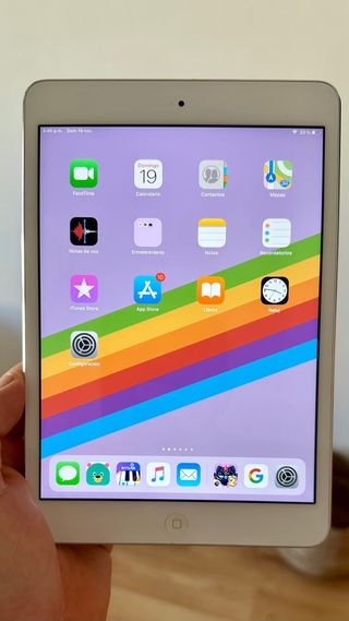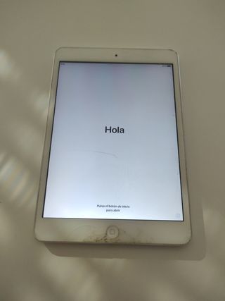 iPad mini 2 en color plata de 16 GB de capacidad. Presenta algunas señales de uso pero se puede usar correctamente. Con caja y cargador sin cable.