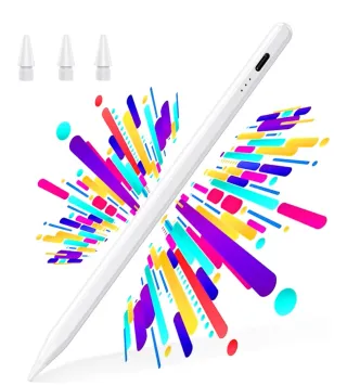 Lápiz stylus blanco compatible con iPad modelos 2018-2025. Incluye carga rápida. - Diseño elegante y ergonómico. - Tres puntas de repuesto incluidas. - Indicador de batería. - BAZO Lápiz para iPad 2018-2025 - Carga Rápida, Detección de Inclinación, Rechazo de Palma-Stylus Pencil para Apple Pencil con iPad 11/10/9/8/7/6/A16, Pro M5/3/4/5/6/M4, Air 3/4/5/M2/M3, Mini 5/6 Pad