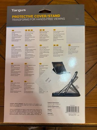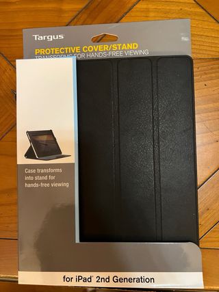 Tapa protectora para Ipad 2, tambien sirve para 3 y 4. Nueva. Marca Targus. El producto es una única pieza para proteger la pantalla del IPad 2, 3 ó 4, según pone en la caja (no lleva lo que parece una proteccion trasera como en la foto de la caja). También lo activa cuando la abres y lo pone en reposo cuando la cierras. Y se pliega en distintas posiciones y hace de soporte. Se acopla con imanes. Cualquier duda pregúntame, por favor