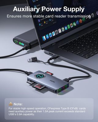 Lector de tarjetas de alta velocidad para CFexpress Tipo A y Tipo B. Permite transferencias rápidas de datos. - Diseño compacto y portátil. - Indicador LED de actividad. - Puertos para tarjetas CFexpress Tipo A y Tipo B. - Conexión USB-C para compatibilidad con dispositivos modernos. llano CFexpress Tipo A/B Lector de Tarjetas con RGB, USB 3.2 Gen 2 (10 Gbps), Adaptador Lector para Tarjetas 4 en 1 TF/Micro SD USB-C 4.0 para Windows, Mac, Linux, Android, iPadOS