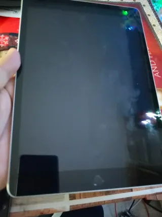 Tablet Apple iPad en color gris. Se llevó un golpe y de vez en cuando, la pantalla se queda negra . A veces arranca enseguida pulsando los dos botones y a veces tarda un día. Parece un problema dela placa base porque la pantalla se ve aparentemente bien. Se vende como está. - Pantalla de alta resolución. - Diseño elegante y ligero.