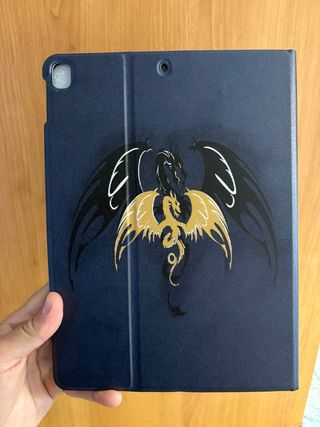 Funda protectora para iPad con un diseño de dragones basado en Alas de sangre. La funda es compatible con iPads de 7ª, 8ª y 9ª generación. Está sin estrenar en su envoltorio original.