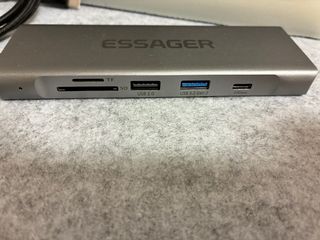 Adaptador ESSAGER USB-C con múltiples puertos. Está en perfectas condiciones. - Conexión cable usb c para conectar en MacBook portátil Windows android ipad iPhone... - Incluye segundo cable usb-c 100w. - Diseño elegante y compacto. - Almacenamiengo intento ssd Nvme 128gb. - Lector tarjetas, usb 2.0 y 3.2, 2x usb-c 10gbps, HDMI 4k.