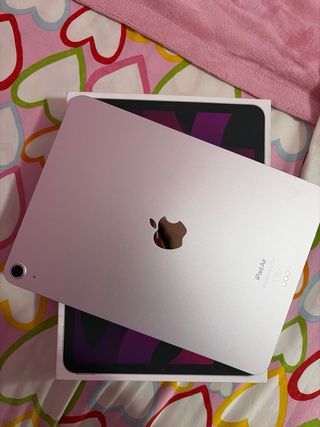 iPad Air de quinta generación en color rosa. Se encuentra en perfecto estado, sin rasguños en la pantalla ni en el exterior. Nada cambiado, todo original. Bateria en perfecto estado. Con ticket de compra del Mediamarkt. Incluye: -Apple pencil original -Cargador original -Funda protectora -Protectores de pantalla lisos y rugosos para el apple pencil -Funda con teclado bluetooth compatible a estrenar - 2 fundas para guardarlo/transportarlo
