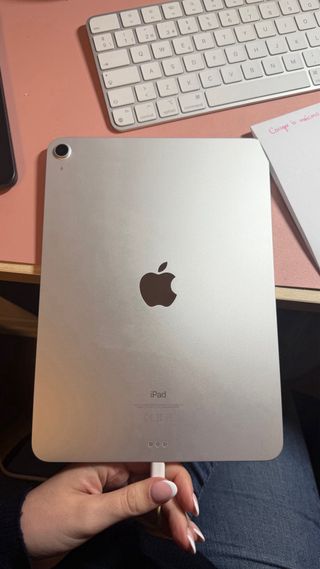 - iPad Air de 5ta generación en color rosa y plata. Con apple pencil de regalo y cargador usbc. - Tiene un protector de pantalla tipo Papel que se puede quitar. - Pantalla Liquid Retina. - Chip M1 para un rendimiento excepcional. - Compatible con Apple Pencil (2da generación). - Cámara frontal y trasera de alta calidad. - 64gb de almacenamiento. - IOS 26.2. La vendo porque no le doy uso.