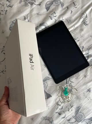 Tablet iPad Air de 16 GB, modelo A1475. Lo utilizamos principalmente para ver series y películas ya que podíamos instalarle aplicaciones como Youtube, Netflix, Crunchyroll, Disney y Prime, también lo utilizamos para leer en la app de Apple ya que su tamaño es muy cómodo para hacer sesiones de lectura largas. - Color gris y negro. - Esta en muy buenas condiciones. - Sin golpes ni arañazos.
