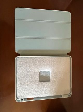 Funda protectora Smart Folio en color negro de Apple para iPad Air de 4 y 5 gen Vendo porque no es compatible con el modelo de IPad que tengo, la compré hace unos días, la he probado, no me vale y la vendo. Tiene una pequeña rajita en la 4 foto