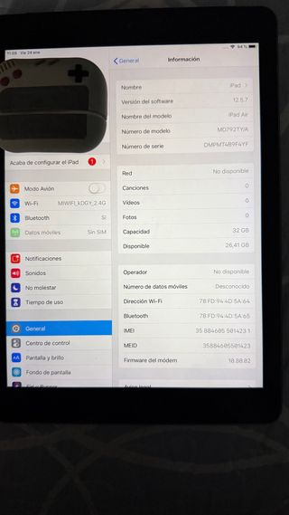 iPad Air 2 con 64 GB de almacenamiento. - Modelo: MGKL2TY/A - Versión de software: 14.7.1 - Dirección Wi-Fi: 9C:F3:87:9B:21:C6 - Bluetooth: 9C:F3:87:9B:21:C7