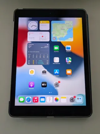 iPad Air 2 color gris espacial, con 128GB de almacenamiento. Incluye una funda protectora. Funciona perfectamente y la pantalla no tiene ningún arañazo destacable.