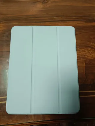 Funda protectora para iPad Air de 11 pulgadas. Su diseño plegable permite usarla como soporte. Vendo por falta de uso - Color: Azul claro. - Material: Poliuretano y microfibra.