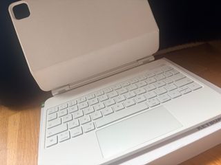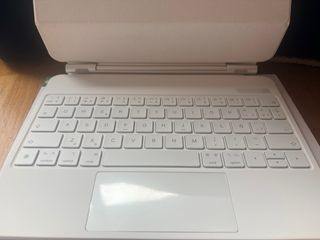 Teclado blanco para iPad, diseñado para una experiencia de escritura cómoda y eficiente. - Diseño elegante y minimalista. - Teclas retroiluminadas para mayor visibilidad. - Trackpad integrado para una navegación fluida. - El vinilo rosa se puede quitar sin problema.(valor del vinilo 20€) - Apenas tiene uso, lo vendo por cambio de modelo de tablet. - Compatible con ipad air de 11 pulgadas . - No es de la marca apple.