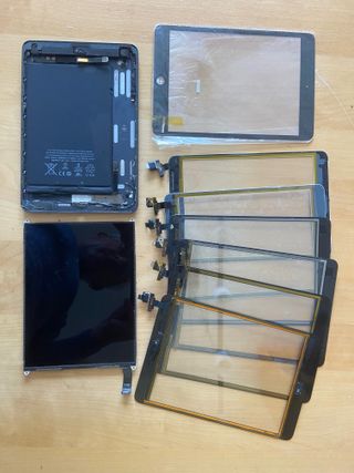 6 Touch-screens usados 1 Touch-screen nueva (sin conexión!) 1 Carcasa con bateria ipad Mini Wifi negro (A1432) 1 lcd ipad mini (A1432) (no sé su estado) Pongo todo como "Lo ha dado todo" porque no sé su estado. Piezas para usar / hacer tests / practicar. No se acepta devolución.